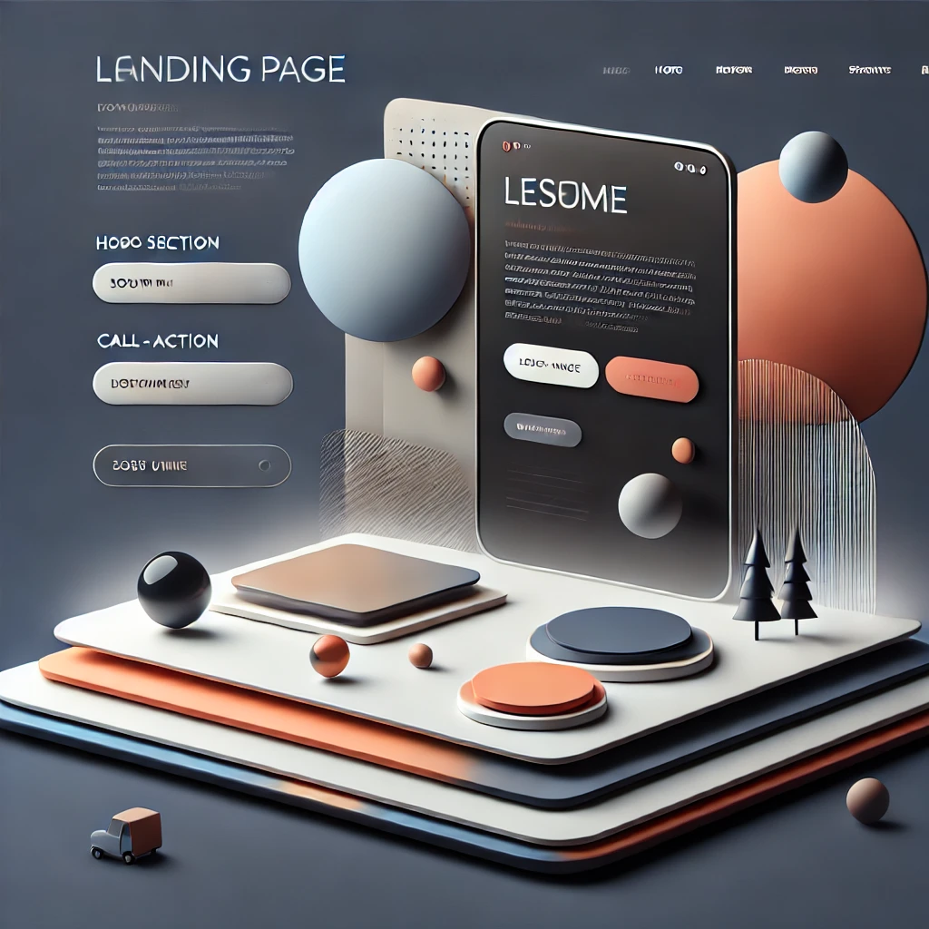 A modern landing page design for a website, featuring a clean and minimalistic UI with a hero section, call-to-action button, and smooth color gradients. The design is optimized for responsiveness and has a balanced layout.